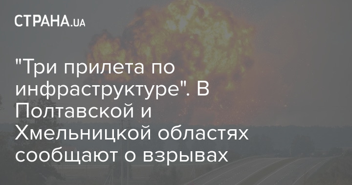 "Три прилета по инфраструктуре". В Полтавской и Хмельницкой областях сообщают о взрывах