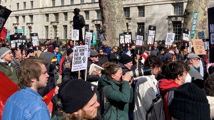 Активисты собрались около правительственной резиденции на Даунинг-стрит. Протестующие требуют снизить цены на газ и электричество. Общее недовольство инфляцией и подорожание энергоресурсов привело к тому, что к требованиям прибавилась также отставка премьер-министра страны Бориса Джонсона и всей Консервативной партии.