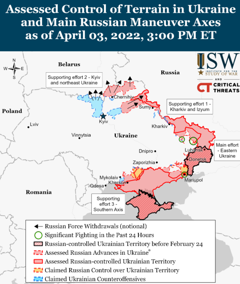 Представляем ситуацию на 3 апреля и карту боевых действий.