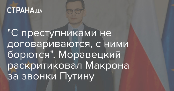 Премьер-министр Польши Матеуш Моравецкий раскритиковал президента Франции Эммануэля Макрона за телефонные переговоры с его российским коллегой Владимиром Путиным.