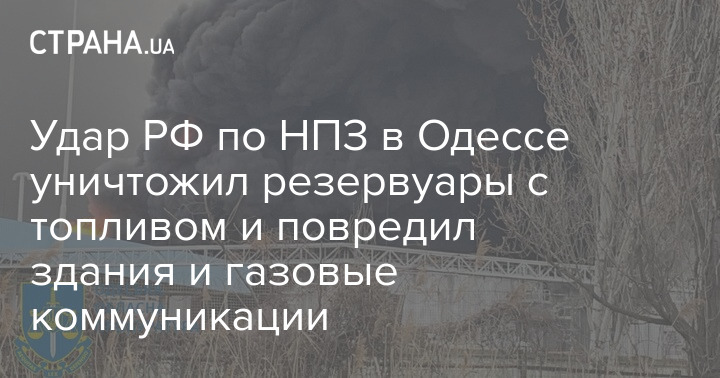 В результате вчерашнего удара РФ по территории нефтеперерабатывающего завода в Одессе уничтожены резервуары с топливом, повреждены хозяйственные здания и газовые коммуникации.