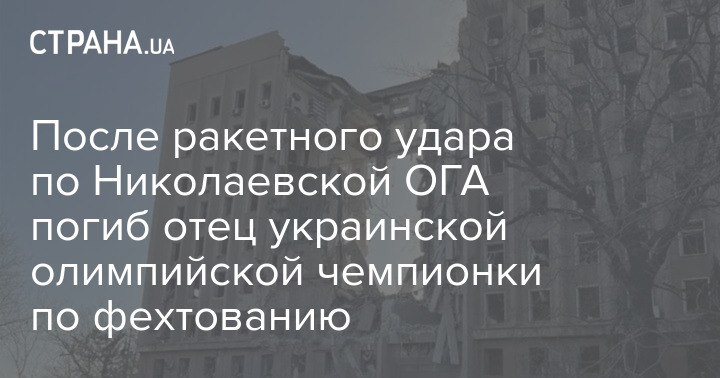 Отец олимпийской чемпионки погиб в результате ракетного удара российских войск по Николаевской областной государственной администрации.