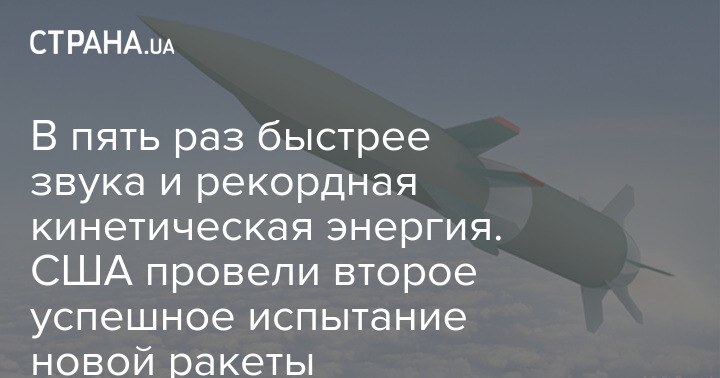 В пять раз быстрее звука и рекордная кинетическая энергия. США провели второе успешное испытание новой ракеты