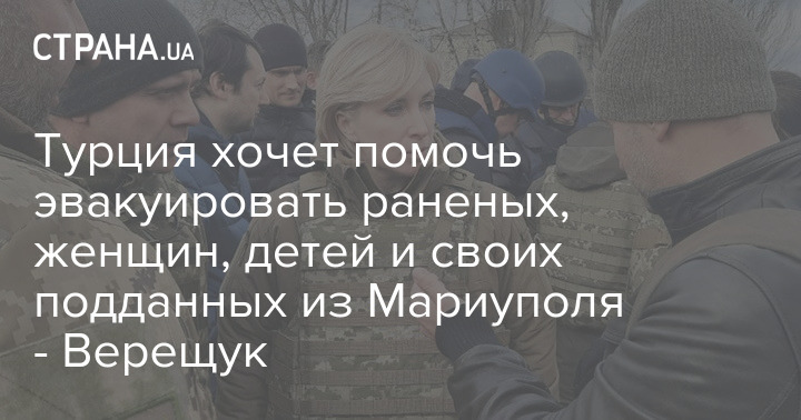 Турция хочет помочь эвакуировать раненых, женщин, детей и своих подданных из Мариуполя - Верещук