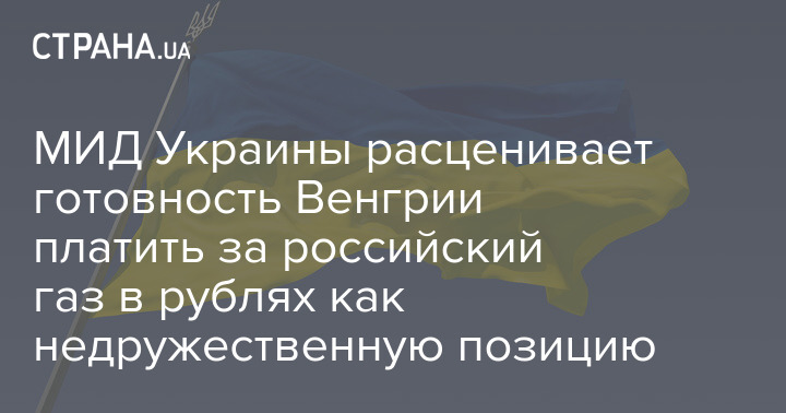 МИД Украины расценивает позицию Венгрии по оплате за энергоресурсы России в рублях как недружественную.