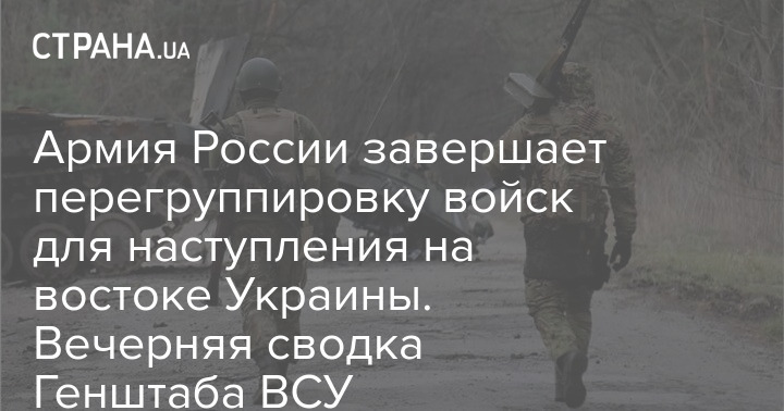 Генеральный штаб Вооруженных сил Украины опубликовал вечернюю сводку с фронта боевых действий, в которой сообщается, что противник продолжает подготовку к наступлению на востоке Украины. Российские войска осуществляют перегруппировку войск с целью завершения формирования наступательной группировки, продолжают ведение разведки.