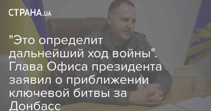 "Это определит дальнейший ход войны". Глава Офиса президента заявил о приближении ключевой битвы за Донбасс
