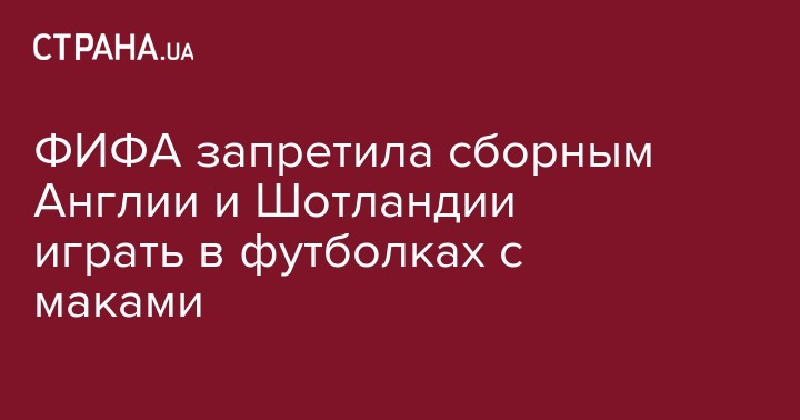 ФИФА не разрешила сборным Англии и Шотландии играть в футболках со знаком красного мака, который является символом памяти жертв военных конфликтов, в которых участвовала Великобритания. Об этом сообщает Mirror.