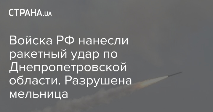 В ночь с 11 на 12 апреля российские войска нанесли ракетный удар по Днепропетровской области. Одна ракета попала в старую мельницу, вторую сбили над полями.