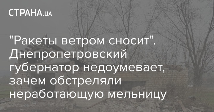 "Ракеты ветром сносит". Днепропетровский губернатор недоумевает, зачем обстреляли неработающую мельницу