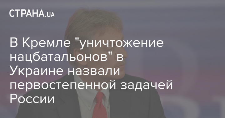 Пресс-секретарь президента РФ Владимира Путина Дмитрий Песков назвал уничтожение националистических батальонов в Украине первостепенной задачей России.
