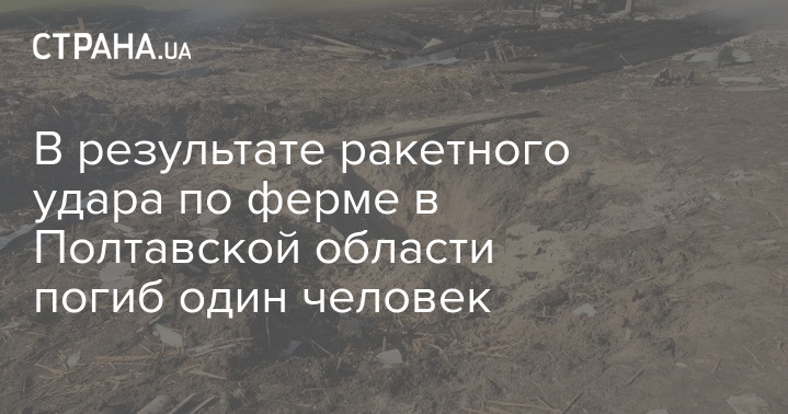 В результате ракетного удара по ферме в Полтавской области погиб сторож. Об этом заявил глава Полтавской областной военной администрации Дмитрий Лунин.