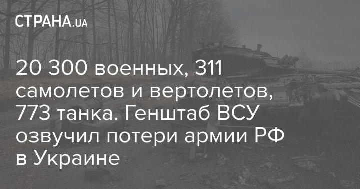 20 300 военных, 311 самолетов и вертолетов, 773 танка. Генштаб ВСУ озвучил потери армии РФ в Украине