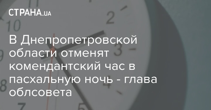 Председатель Днепропетровского областного совета  Николай Лукашук сообщил об отмене в регионе комендантского часа на Пасху - в ночь с 23 на 24 апреля.