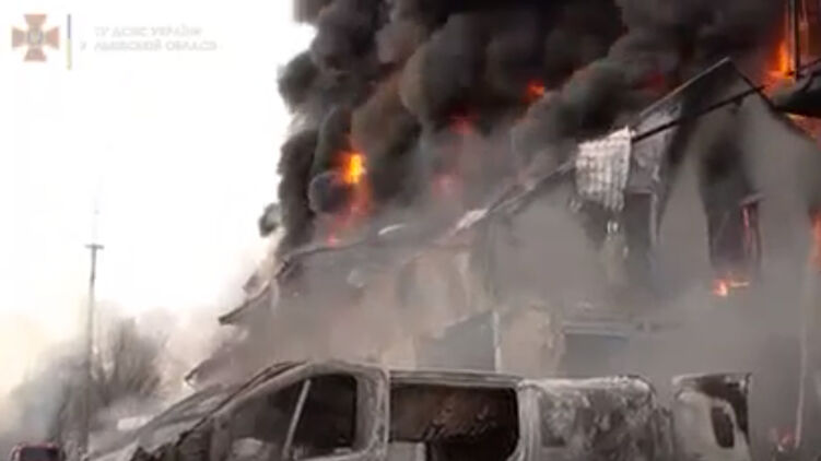 Государственная служба по чрезвычайным ситуациям показала видео пожара во Львове после ракетных ударов по городу