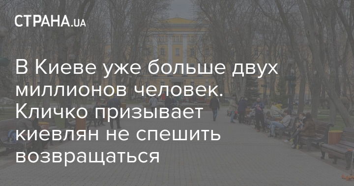 В Киеве уже больше двух миллионов человек. Кличко призывает киевлян не спешить возвращаться