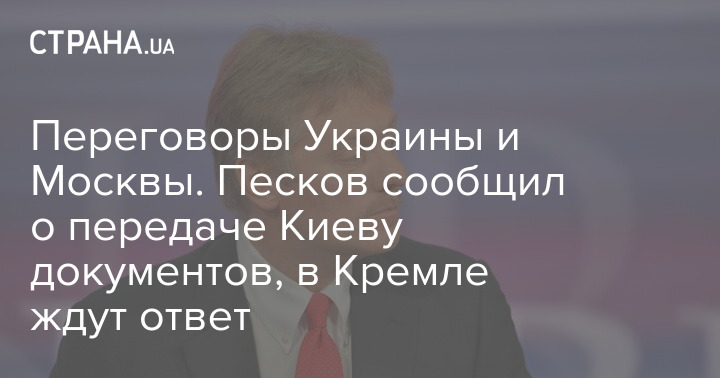 Переговоры Украины и Москвы. Песков сообщил о передаче Киеву документов, в Кремле ждут ответ
