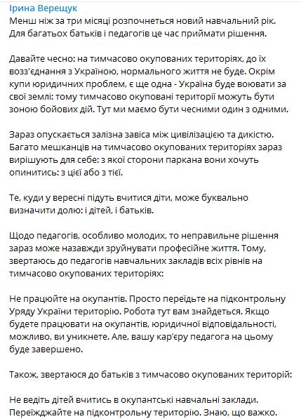 22.23 Генпрокурор Ирина Венедиктова сообщила, что россияне используют украинских детей, чтобы обнаруживать места расположения ВСУ.