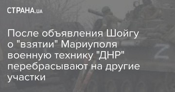 После объявления Шойгу о "взятии" Мариуполя военную технику "ДНР" перебрасывают на другие участки