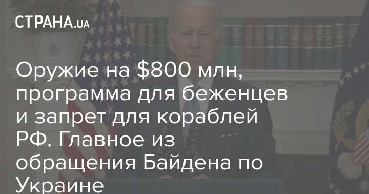 Оружие на $800 млн, программа для беженцев и запрет для кораблей РФ. Главное из обращения Байдена по Украине