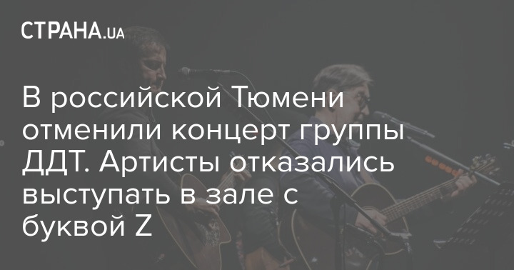 В российском городе Тюмень отменили концерт рок-группы ДДТ, назначенный на 21 апреля. По словам ее лидера Юрия Шевчука, это случилось после того, как музыканты отказались выступать в зале с буквой Z. Об этом Шевчук заявил в интервью журналисту Александру Плющеву.