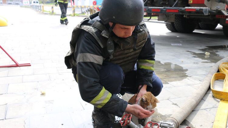 В субботу, 23 апреля, украинские пожарные в Киевском районе Харькова спасли кота, вынеся животное из задымленного торгового помещения.