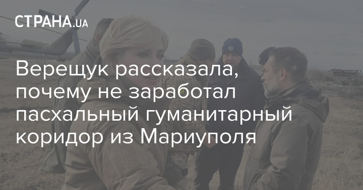 Вице-премьер, министр Украины по реинтеграции временно оккупированных территорий Ирина Верещук в эфире телемарафона заявила, что россияне не дали организовать гуманитарный коридор из Мариуполя на Пасху.