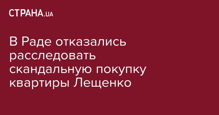 В Раде отказались расследовать скандальную покупку квартиры Лещенко
