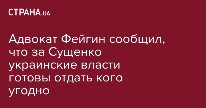 Адвокат Фейгин сообщил, что за Сущенко украинские власти готовы отдать кого угодно
