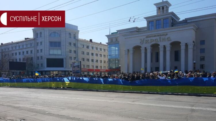 Жители Херсона на митинге против оккупации в начале марта. Фото: Суспільне Херсон