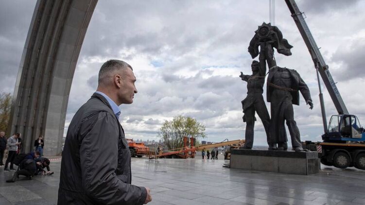 Мэр Киева Виталий Кличко сообщил, что демонтаж скульптуры под аркой Дружбы народов завершится до вечера.