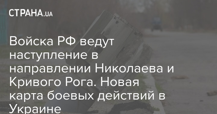 В ночь на 27 апреля американский Институт изучения войны опубликовал актуальную карту боевых действий в Украине. Сообщается, что российские войска ведут наземное наступление в направлении Николаева и Кривого Рога.