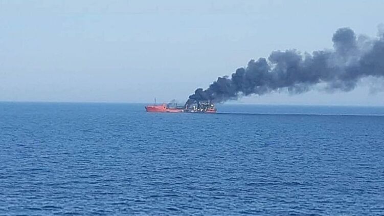 Корабль возле Одессы - обстрелянный молдавский танкер. Фото: Соцсети