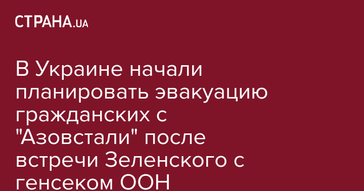 Вице-премьер Ирина Верещук после встречи Владимира Зеленского с генсеком ООН заявила о начале планирования операции по эвакуации мирных граждан с завода "Азовсталь" в Мариуполе.
