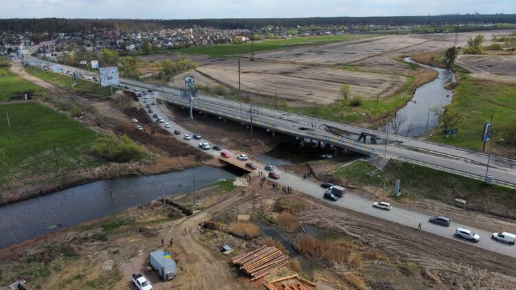 Гостомель и Бучу соединили с Киевом временной деревянной переправой. Фото