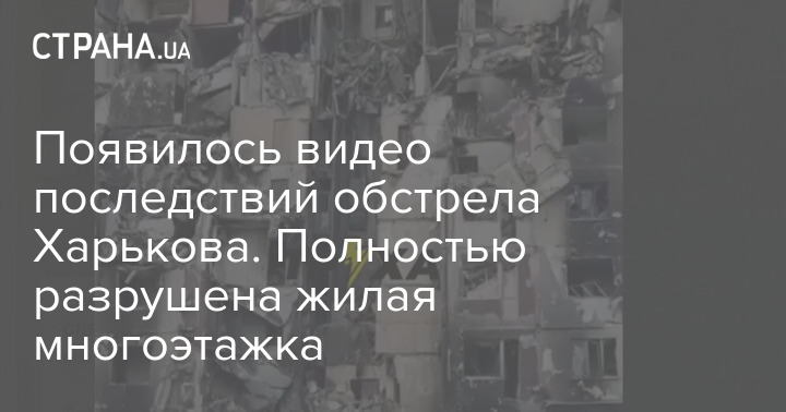 Появилось видео последствий обстрела Харькова. Полностью разрушена жилая многоэтажка