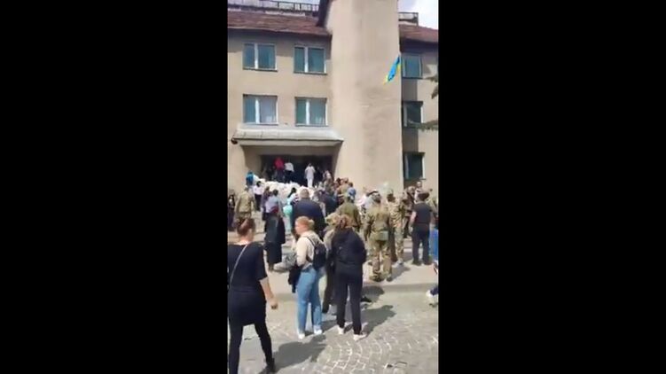 Женщины из города Хуст Закарпатской области устроили протест под стенами местного Центра комплектования военнообязанных. Они возмущены отправкой своих мужей, бойцов теробороны, на фронт без подготовки.