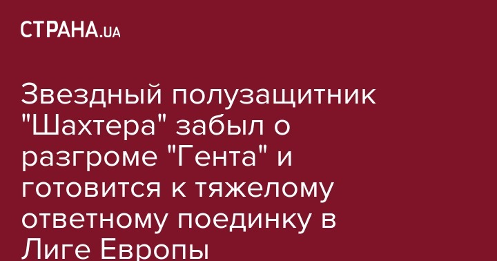 Звездный полузащитник "Шахтера" забыл о разгроме "Гента" и готовится к тяжелому ответному поединку в Лиге Европы
