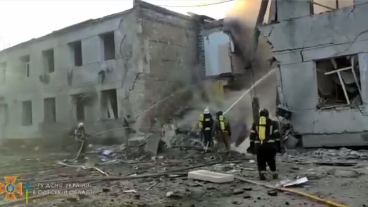 Государственная служба по чрезвычайным ситуациям опубликовала видео последствий ракетного обстрела в Одессе.