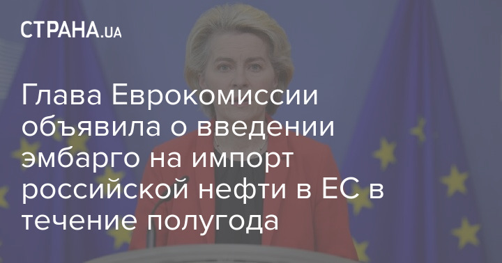 Председатель Еврокомиссии Урсула фон дер Ляйен объявила о введении полного эмбарго на импорт российской нефти в ЕС в течение шести месяцев.