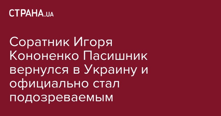 Соратник Игоря Кононенко Пасишник вернулся в Украину и официально стал подозреваемым