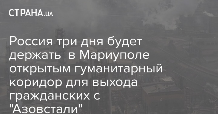 Россия три дня будет держать в Мариуполе открытым гуманитарный коридор для выхода гражданских с "Азовстали"
