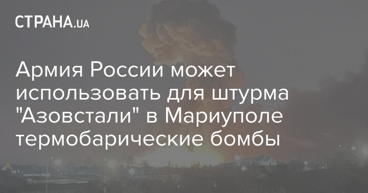 Российские военные могут сбрасывать на завод "Азовсталь" в Мариуполе термобарические бомбы.