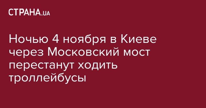 В столице Украины, в ночь с четверга на пятницу или с 3 на 4 ноября соответственно, будет приостановлено движение троллейбусов, которые курсируют через Московский мост, передает пресс-служба КГГА.