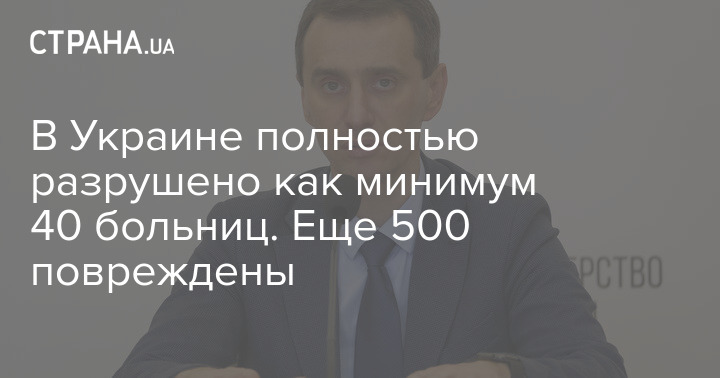 Министр здравоохранения Виктор Ляшко рассказал, что с начала полномасштабного вторжения России в Украине повреждены около 500 больниц. Также 40 медучреждений разрушены и не подлежат восстановлению