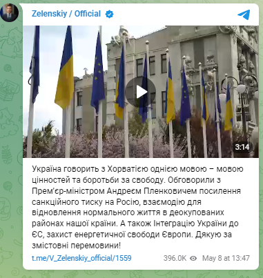 "Украина говорит с Хорватией на одном языке - языке ценностей и борьбе за свободу. Обсудили с премьер-министром Андреем Пленковичем усиление санкционного давления на Россию, взаимодействие для восстановления нормальной жизни в деоккупированных районах нашей страны", - рассказал он.