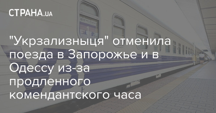 В "Укрзализныце" сообщили об отмене поездов в Одессу и в Запорожье из-за действия в этих регионах усиленного комендантского часа, который продлится с вечера 8 мая до утра 10 мая.
