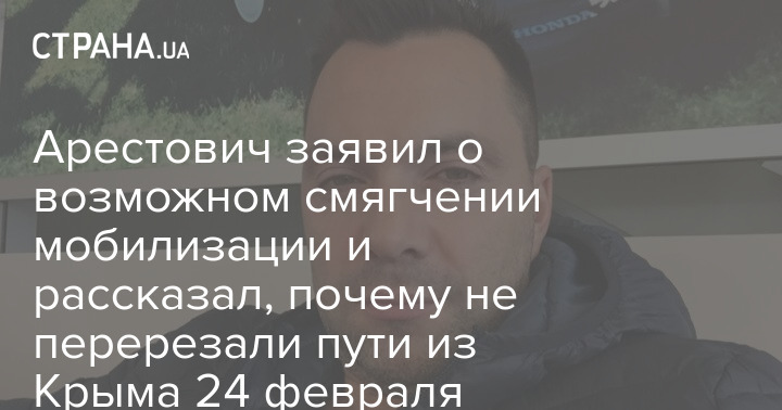 Советник главы Офиса президента Алексей Арестович рассказал, что мобилизация в Украине может смягчиться и некоторых мужчин начнут выпускать в краткосрочные поездки за границу.