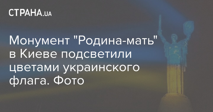В ночь на понедельник, 9 мая, в Киеве монумент "Родина-мать" подсветили синим и желтым цветами.
