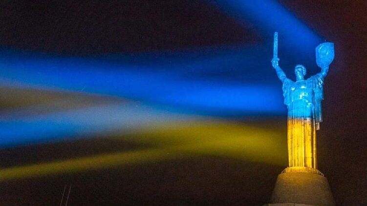 Монумент засиял цветами флага Украины. Фото: facebook.com/MKIPUkraine